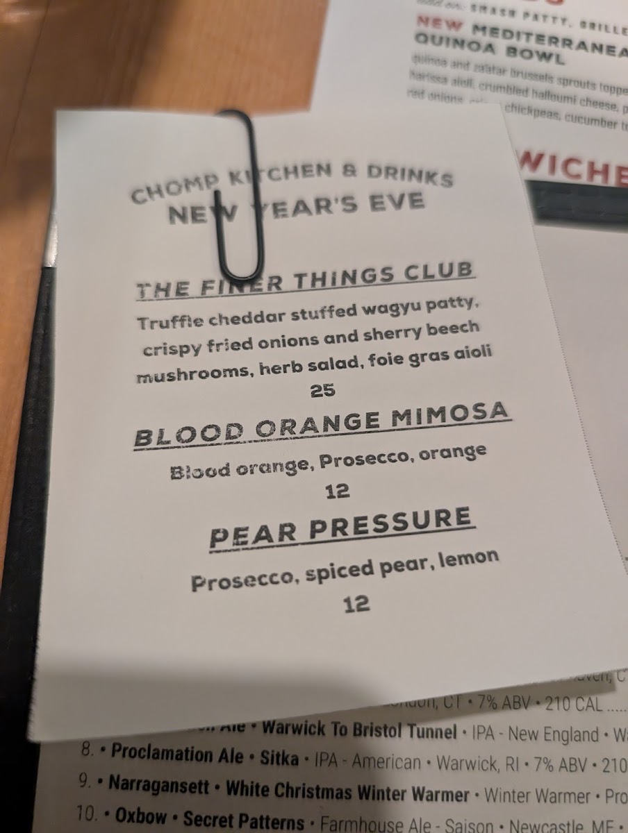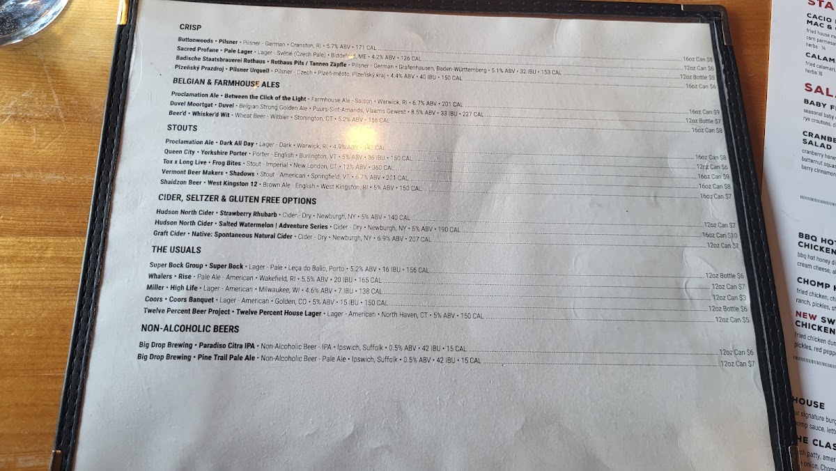 Another standout is the Classic Smash Burger, which many claim is the best in New England, showcasing the restaurant's commitment to quality with in-house made sauces and toppings. The welcoming atmosphere is enhanced by attentive service, making every visit not just a meal, but a delightful culinary experience. Whether you’re stopping by for a quick bite or a relaxed dinner, Chomp Kitchen and Drinks promises a feast that keeps patrons coming back for more.